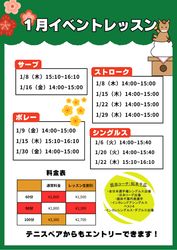 🎍1月大人のイベントレッスン❗️🎾【初参加大歓迎です】