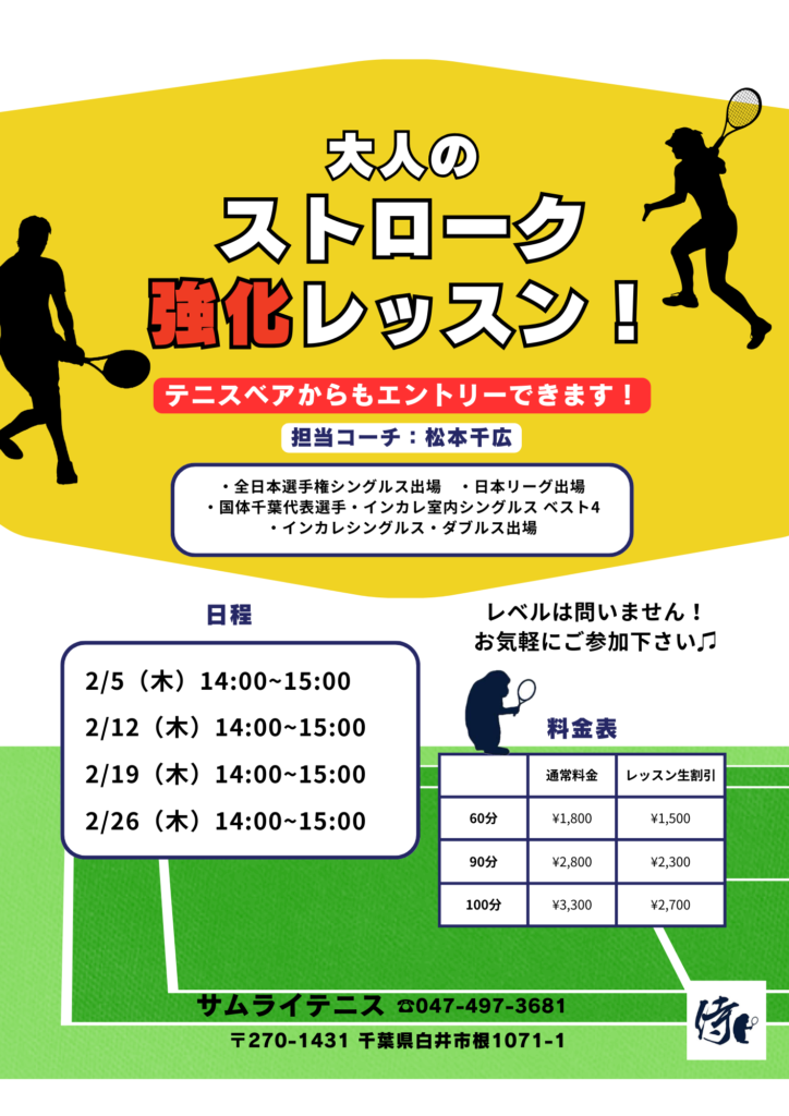 2月大人のイベントレッスン❗️🎾【初参加大歓迎です】