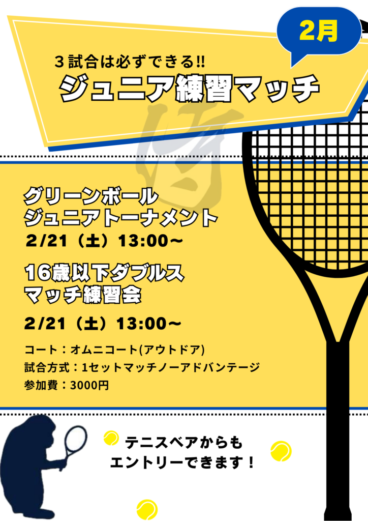試合経験を積みたいジュニア選手必見‼️