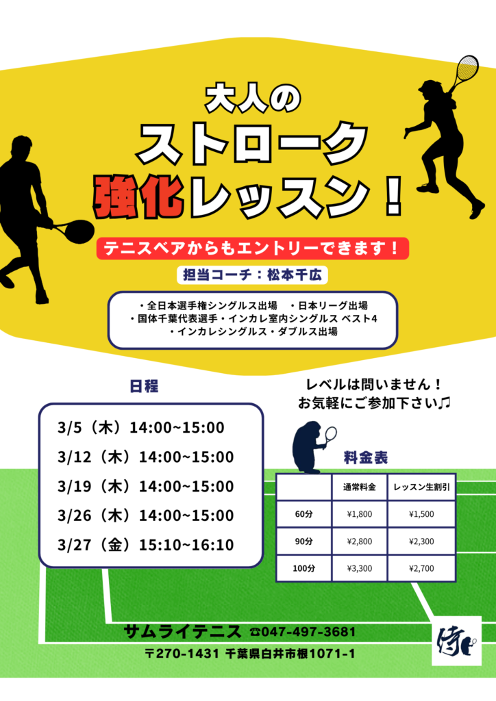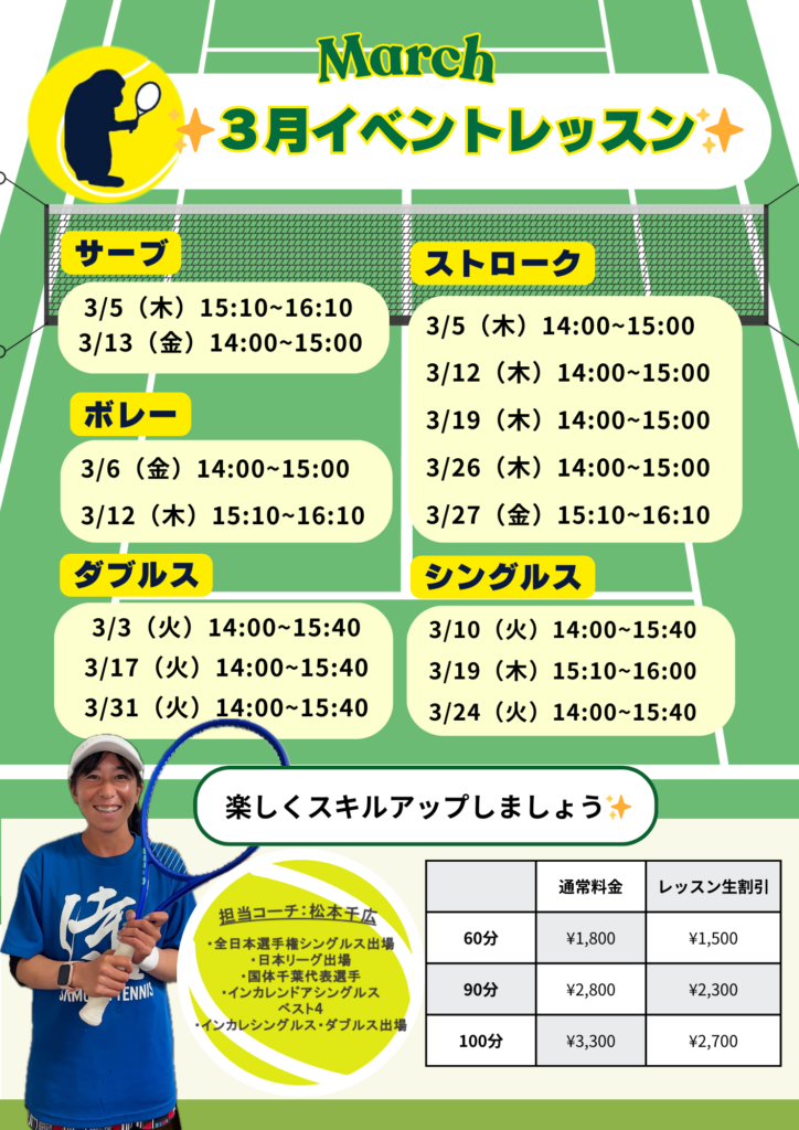 3月大人のイベントレッスン❗️🎾【初参加大歓迎です】