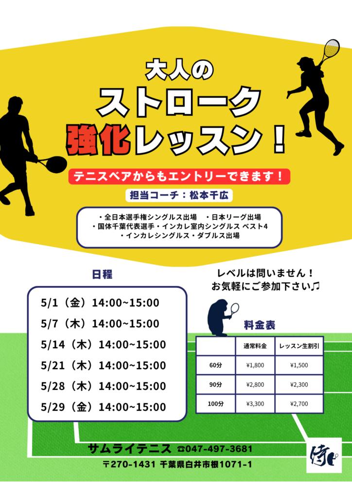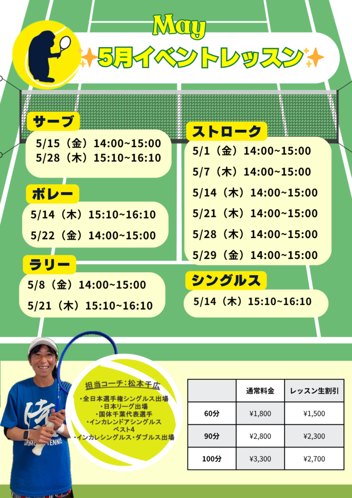 5月大人のイベントレッスン👒🎾【初参加大歓迎です】