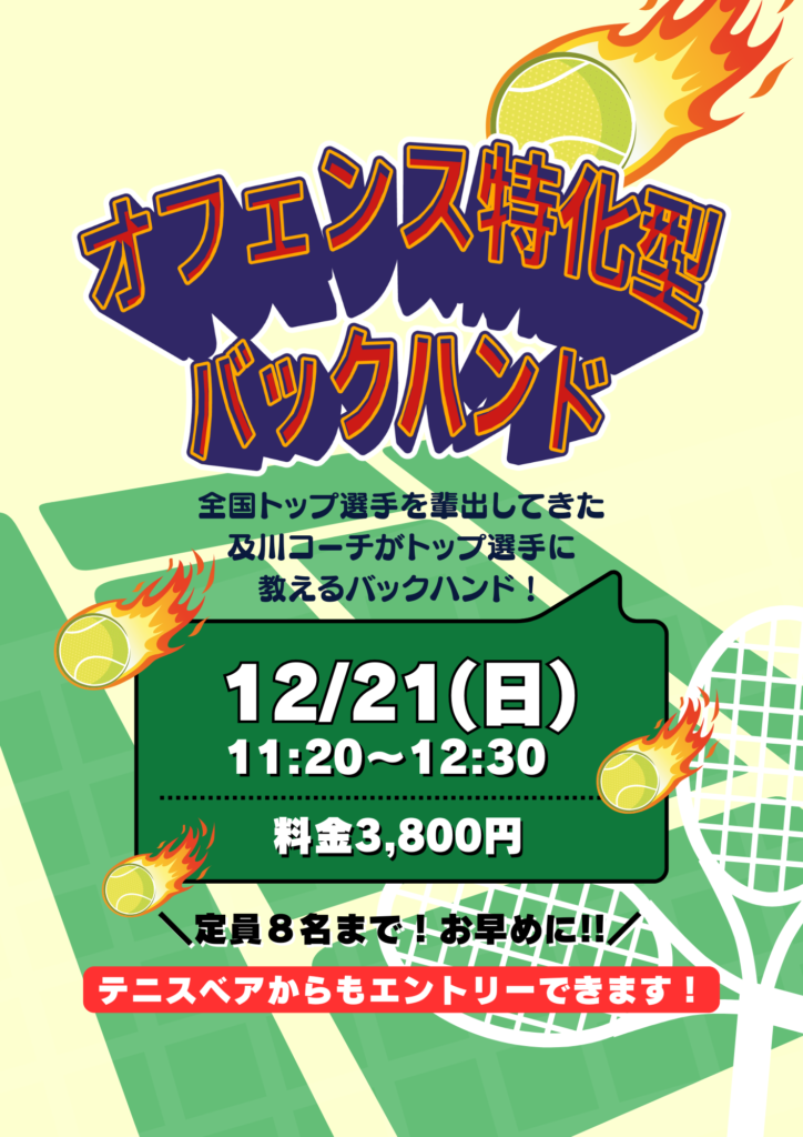 | 12/21(日)11:20〜 オフェンス特化型バックハンド! | テニスベア |